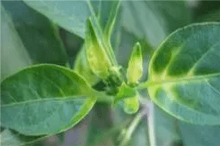 表现:植株缺铁,对植株的幼叶影响更为严重,对老叶的影响相对较轻,往往表现为植株幼叶的叶肉呈黄色,并形成网络。