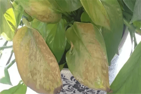 表现:如果过于强烈的阳光照射到植株上,有可能将植株灼伤, 植株叶片的叶缘和叶尖部位会发黄干枯,被阳光直接照射的部分出现黄斑。