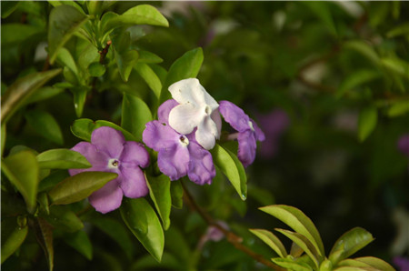 双色茉莉是喜酸性土的花卉,若盆土或水质偏碱,常引起叶片由绿转黄,甚至脱落,除用酸性营养土载培,可使用矾肥水或0.2%-0.5%的硫酸亚铁水溶液喷施,既可使叶子由黄变青。