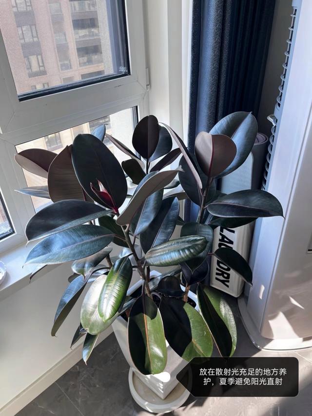 总结:橡皮树养护非常简单,种植在疏松透气的营养土中,然后放在散射光充足且通风良好的地方养护,等到土壤完全干透后再浇水,可以大水浇灌也可以浸盆,确保每次浇透且不积水。想要叶片长得更漂亮,可以在春秋两季使用一些固体缓释肥,每十天用啤酒兑水后擦拭叶片,会更加有光泽。